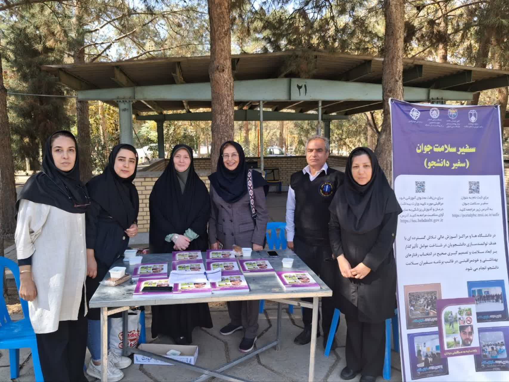 در راستای اجرای برنامه «خودمراقبتی» و جذب سفیران دانشجو، در روزهای پنجشنبه و جمعه، هشتم و نهم آبانماه ۱۴۰۴، کارشناسان واحد آموزش سلامت شهرستان خمینیشهر به همراه کارشناسان مرکز بهداشت استان اصفهان با حضور در جشن دانشجویان جدیدالورود دانشگاه صنعتی اصفهان در محل باغ ابریشم، اقدام به برپایی میز خدمت کردند.