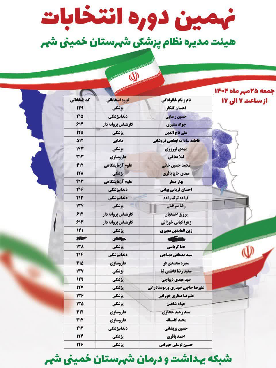 نهمین دوره انتخابات هیات مدیرههای نظام پزشکی نهمین دوره انتخابات هیات مدیرههای نظام پزشکی شهرستان خمینی شهر